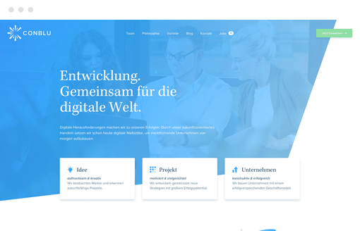 Conblu hat seinen Fokus auf spannende, zukunftsfähige und innovative Projekte gerichtet. In gemeinsamer Teamarbeit sollen qualitative Maßstäbe in der digitalen Branche gesetzt werden. Agile Methoden und ein kunterbuntes Team geben dabei die Richtung vor.