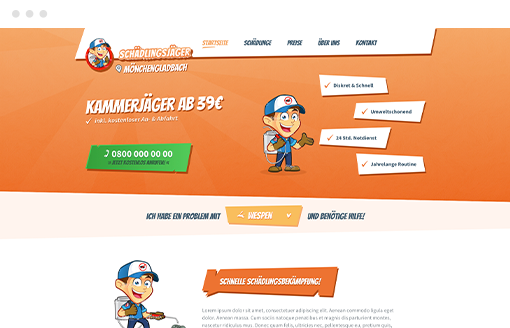 Schädlingsjäger bietet eine schnelle Vermittlung von lokalen Dienstleistern zum Beseitigen von Schädlingen wie Kakerlaken, Bettwanzen oder Eichenprozessionsspinnern. Der Fokus lag dabei auf einer optimalen und günstigen Vermittlung.